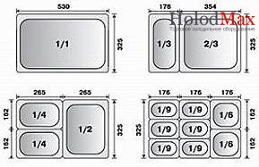 Гастроємність GN 1/3 виконана із міцної харчової нержавіючої сталі з товщиною металу 0,8 мм, що забезпечує її міцність, безпеку, тривале збереження своїх властивостей. Гастроємність типу GN 1/3 можна використовувати в магазинах для демонстрації готових страв та продуктів харчування, а також на підприємствах громадського харчування для зберігання, приготування, підігріву продуктів. Сталь AISI 304 18/10 (нікель/хром).
