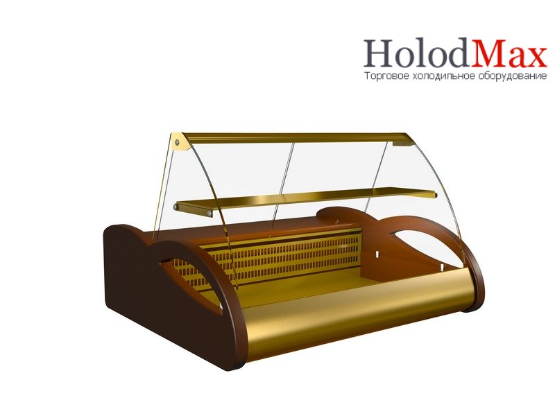 Ширина выкладки товара составляет 486 мм. Также внутри надёжно закреплена дополнительная полка, которая позволяет выставить на продажу сопутствующие товары. Температуру внутри витрины можно настраивать вручную с помощью термостата в пределах от 0 до -6 ºС. Данная модель оборудована новейшим холодильным агрегатом шведской компании Electrolux. Компрессор заправлен хладагентом R134a. Передняя панель, дополнительная полка и столешница морозильной витрины Арго Люкс изготовлены из оцинкованной стали, которая окрашена в золотистый цвет.