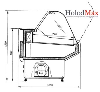 Площадь экспозиционной поверхности витрины составляет 1,37м2. Для подсветки продукции используется люминесцентная лампа. Ассортимент продукции, представленный на витрине доступен покупателю через обзорное стекло. В данной модели витрины установлено гнутое стекло, предотвращающие появление световых бликов. Боковые панели витрины защищены стойким к ударам ABS – пластиком, заполненным пенополиуретаном. Полка продавца выполнена из постформинга. Длина витрины составляет 2,03м., ширина – 1, 09м., поэтому её удобно устанавливать в супермаркетах или торговых залах. Гарантийный срок обслуживания составляет 12 месяцев.