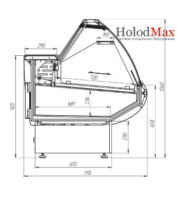 Вітрина середньотемпературна Muza (Україна, Вінниця) - призначена для зберігання молока, мяса, риби, ковбасних виробів, сирів, кондитерських виробів та інших продуктів харчування, для магазинів середньої та малої площі.