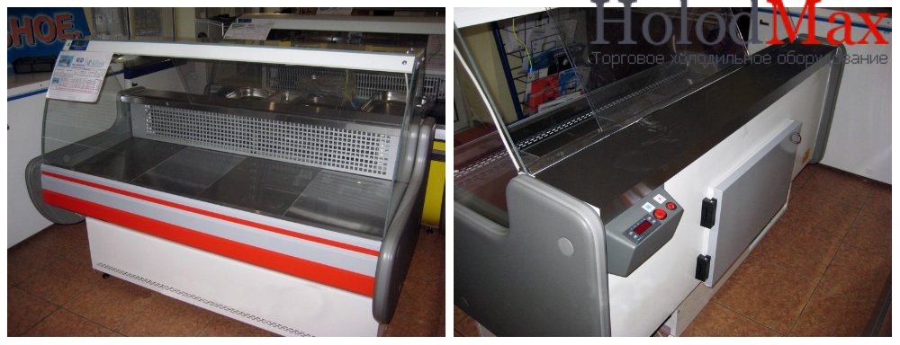 Витрина холодильная "Лира М" (модернизированная) — используется для демонстрации гастрономической группы товаров. Останавливая выбор на данной модели важно обратить внимание на увеличенную выкладку и столешницу со стороны продавца из нержавеющей стали. Ширина полки продавца (столешницы) - 180 мм. Гнутое (выпуклое) стекло, боковины выполнены из пластика, в основном серого цвета, но цвет может изменяться производителем, без уведомления. Под выкладкой присутствует дополнительный бокс, для хранения товара (высота 22,5 см). Холодильный бокс выполнен снаружи из металла, внутреняя отделка - пластик. Корпус холодильной витрины изготовлен из листа гладкого с полимерным покрытием и залит пенополиуританом, что позволяет значительно экономить электроэнергию. Цвет самого бампера можно выбрать — красный, синий, желтый, зеленый, серый, белый. Нестандартный цвет обговаривается дополнительно. Управление витрины автоматическое, то есть используется электронный контроллер EVKO с датчиком температуры. По желанию клиента дополнительно в данную модель можно установить стеклянную полку и перегородку. Важно обратить внимание, что перегородка не есть герметичной, она просто разделяет группу товаров.
