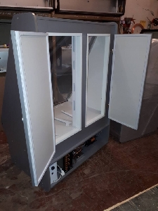 Витрина холодильная ДНIПРОторг с динамическим охлаждением (No Frost) - используется для демонстрации снековой продукции, а также гастрономической группы товаров (колбас,сыры, копчености) . Боковины выполнены из ламинированного ДСП.