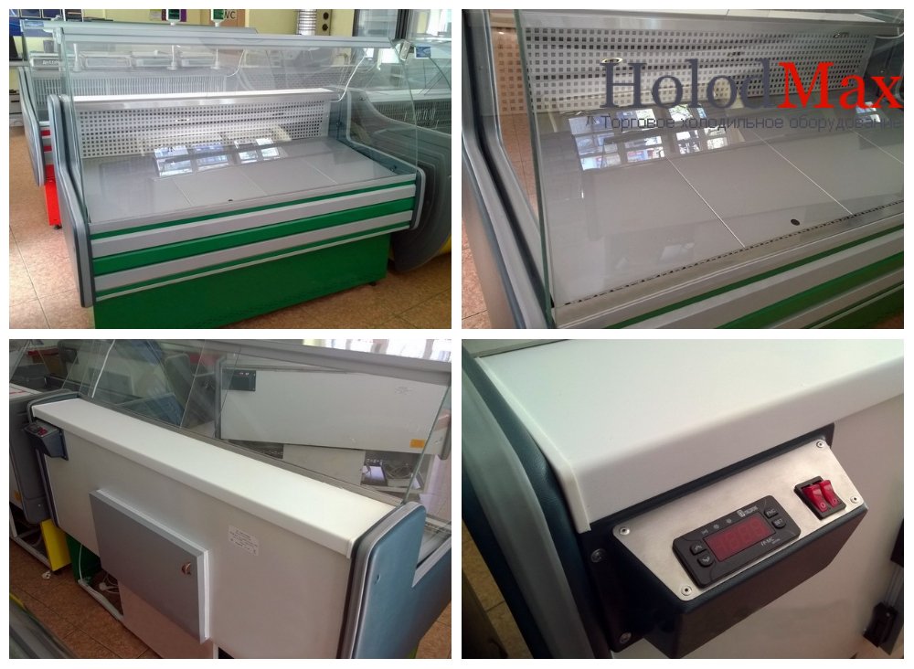 Витрина холодильная ВХСК ПАЛЬМИРА 1.2 (Харьков, Украина) - используется для демонстрации гастрономической группы товаров (колбас, молочка, сыры, копчености). Останавливая выбор на данной модели важно обратить внимание на выкладку из металлопласта (оцинковка с полимерным покрытием). Рабочая столешница продавца из пластика. Гнутое (выпуклое) фронтальное стекло. Боковины выполнены из ударопрочного ABS пластика, залитые пенополиуретаном под высоким давлением, в основном серого цвета, но цвет может изменяться производителем, без уведомления. Под выкладкой присутствует дополнительный бокс, для хранения товара. Двери бокса обшиты металлопластом. Холодильный бокс выполнен снаружи из металла, внутренняя отделка — пластик. Корпус холодильной витрины изготовлен из листа гладкого с полимерным покрытием и залит пенополиуретаном, что позволяет значительно экономить электроэнергию. В верхней части витрины расположена подсветка полезной выкладки товара. Цвет самого бампера можно выбрать — красный, синий, желтый, зеленый, серый, белый. Нестандартный цвет обговаривается дополнительно. Управление витрины автоматическое, то есть используется электронный контроллер EVKO с датчиком температуры. По желанию клиента дополнительно в данную модель можно установить стеклянную полку и перегородку. Важно обратить внимание, что перегородка не есть герметичной, она просто разделяет группу товаров.