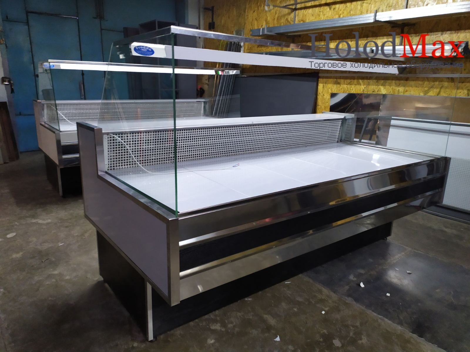 Викладка товару виготовлена із харчової нержавіючої сталі. Підсвічування внутрішнього обсягу вітрини організоване за допомогою лампи, яка чудово підсвічує товари, що представляють покупцю. Якщо Ви реалізовуватимете мясну продукцію, ми рекомендуємо Вам докупити спеціальну «червону» лампу для більш ефектного підсвічування викладки.