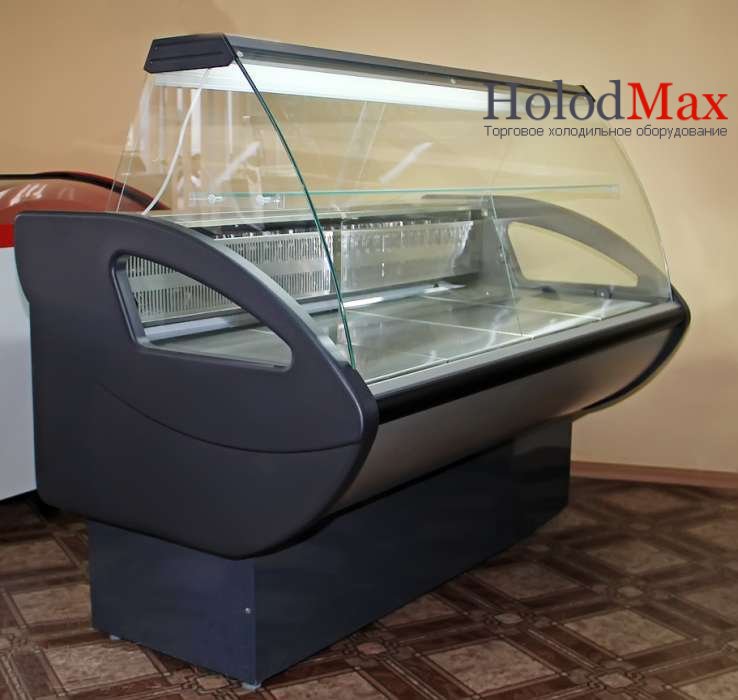 Покупателю предлагается выбрать цвет основы витрины для лучшего соответствия интерьеру магазина. Подсветка витрины осуществляется с помощью люминесцентной лампы подсветки, которая находиться в верхней части витрины. Так же вверху витрины расположена полка передачи товара покупателю. Компания HolodMax доставляет купленное Вами оборудование в любой город на территории Украины. Звоните, Вас приятно удивят наши цены на охлаждаемые витрины!
