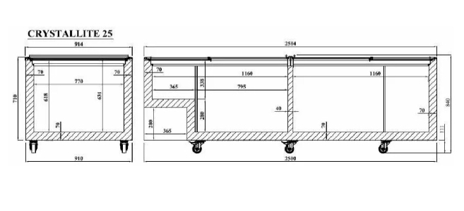 Морозильна скриня-бонета з прямими кришками CrystalLite 25 в кольорі корпусу black (чорний) - представлені грецькою компанією Crystal (Кристал) є популярними в Європі вітринами-ларями-бонетами, які ефективно використовуються для зберігання та торгівлі замороженими продуктами харчування в супермаркетах.