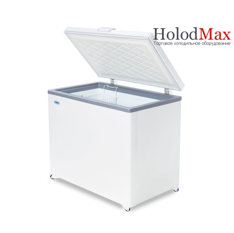Морозильный ларь с глухой крышкой МЛК 250 - предназначен для хранения уже замороженных продуктов, для хранения которых требуется температурный режим -18...-25. Корпус ларя изготовлен из оцинкованной стали с полимерным покрытием белого цвета (RAL9003). Пластиковая окантовка в ларе выполнена из глянцевого ударопрочного тисненого пластика или шагрень (когда поверхность краски не гладкая, а немного как апельсиновая корка) серого цвета. Время выхода на рабочую температуру всего 40 минут. Для оптимальной работы температура окружающего воздуха должна быть в пределах от + 5 до + 32 С°(климатический класс 4). Мощность, 181 Вт. Конденсатор ларя - змеевик, обклеенный алюминиевым скотчем для увеличения теплоотдачи. При изготовлении ларей Снеж используются термостаты марки 077B0025 компании DANFOSS, имеющие очень точную регулировку температуры. В базовой комплектации ларь оснащается 1й корзиной, опорными колесами.