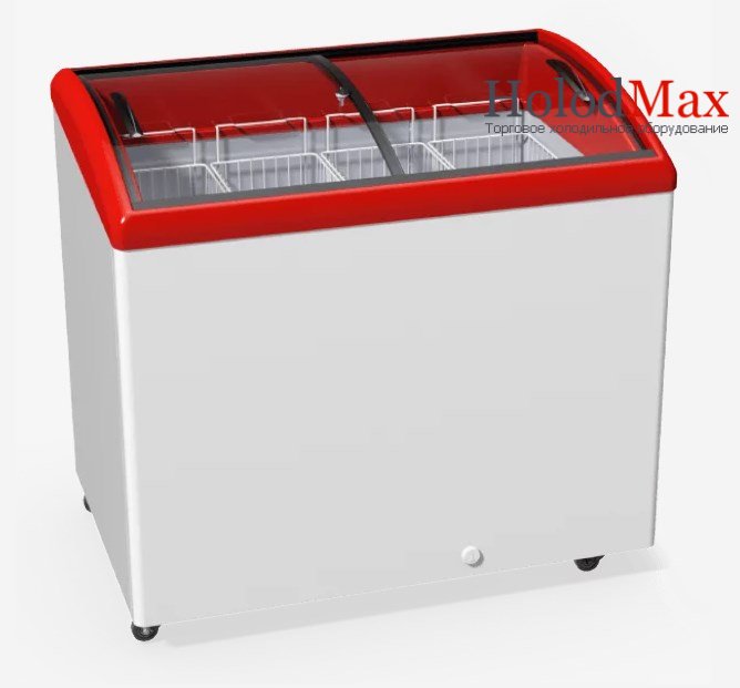 Ларь морозильный Juka (Юка) M300S с гнутым стеклом, 1016*661*938 мм, 4 корзины, замок в комплекте, колеса. Полезный объем 271 л.