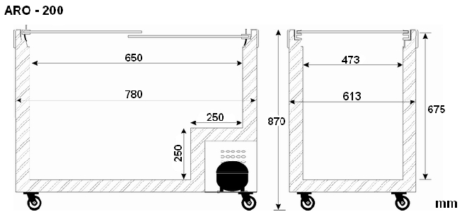 Морозильный ларь Byfal ARO-200/1 полезный объем 176л, предназначен для хранения и демонстрации замороженных продуктов. Ларь укомплектован 3-мя корзинами и колесами. Управление работой с помощью механического термостата.