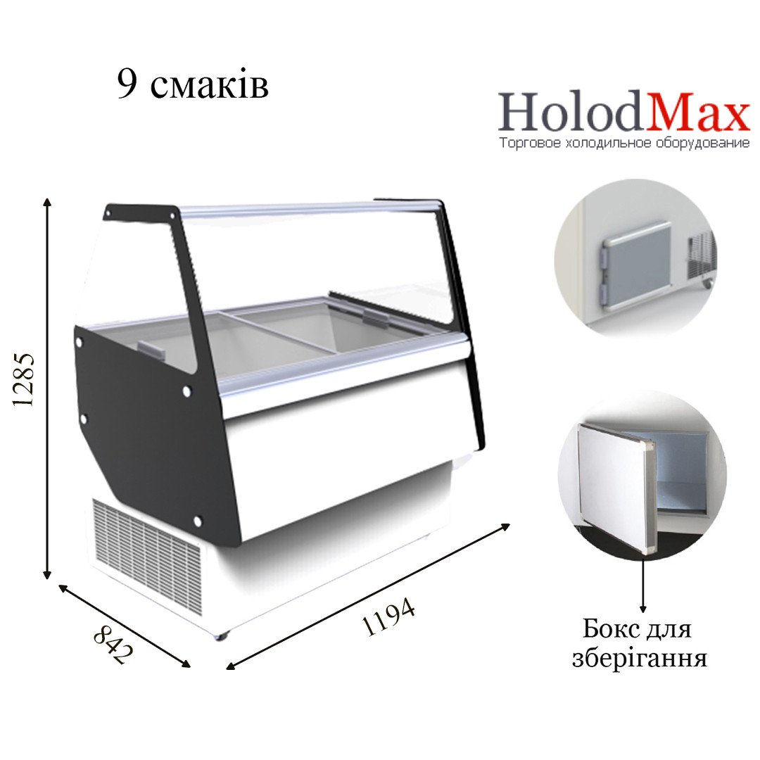 Холодильная витрина для мягкого мороженого Crystal ATHINA 9 - надежная и функциональная. Высокоэстетичная для идеальной демонстрации товара. Камера с дверцей для хранения запаса товара. Отверстия под металлические гастроёмкости из нержавеющей стали 360х165 мм, на 9 вкусов (лотки не идут в комплекте). Внутренние размеры: длина 1060 мм, ширина 560 мм, объем 358 л.
