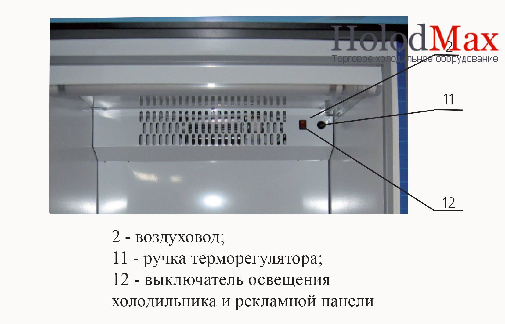 Есть горизонтальная подсветка внутреннего объема лампой 15 Вт. Управление температурным режимом осуществляться с помощью механического термостата. Замок отсутвует. Двери не перенавешиваются. При открывании дверей , а также в течение цикла оттайки, температура во внутреннем объёме шкафа может повышаться, что не является дефектом.