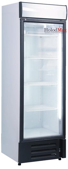 Среднетемпературный шкаф с одной стеклянной дверью. Диапазон температур окружающей среды для такой модели холодильного шкафа - +18…+43 оС, что ограничивает его использование на улице в холодное время года. Дверь оснащена механизмом самозакрывания, также есть решетка моторного отсека, механический замок, пластиковые ценникодержатели.