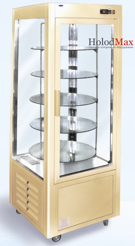 Обратите внимание, динамическая система охлаждения не рекомендуется для демонстрации и хранения кондитерских изделий без упаковки, так как товар будет обветриваться. Панорамное остекление и система вращающихся стеклянных полок диаметром 575 мм, с функцией автоматического отключения вращения при открытии двери. Внутренний обьем освещается подсветкой, которая находится в верхней части. Демонстрационная часть выполнена из нержавеющей стали.