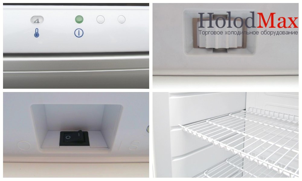 Шкаф оснащен системой автоматического размораживания. Имеет 5 регулируемых полок по высоте типа решетки, покрытые белой полимерной краской. Шаг установки полок - 50 мм, а высота - 28, 5 мм.