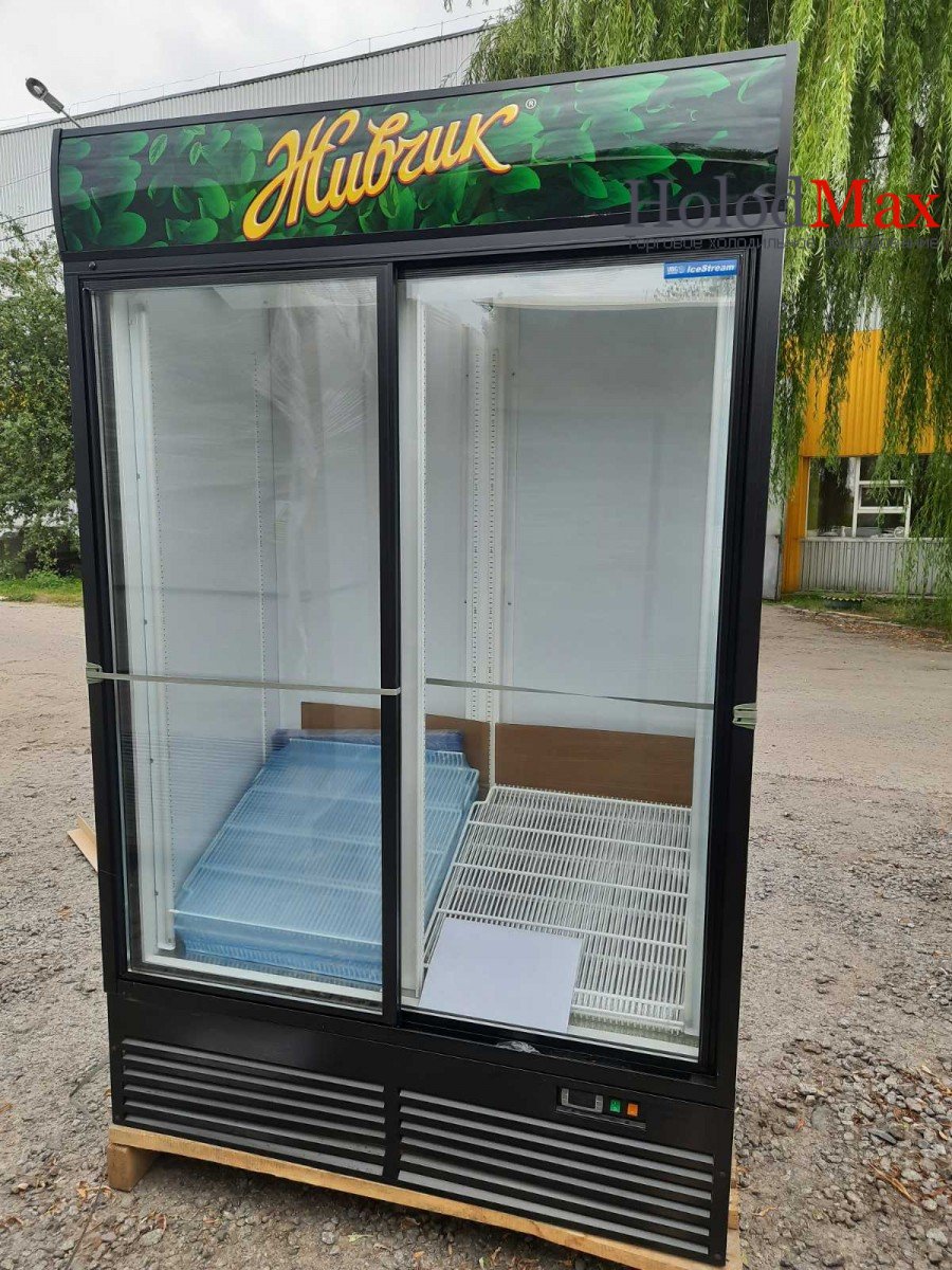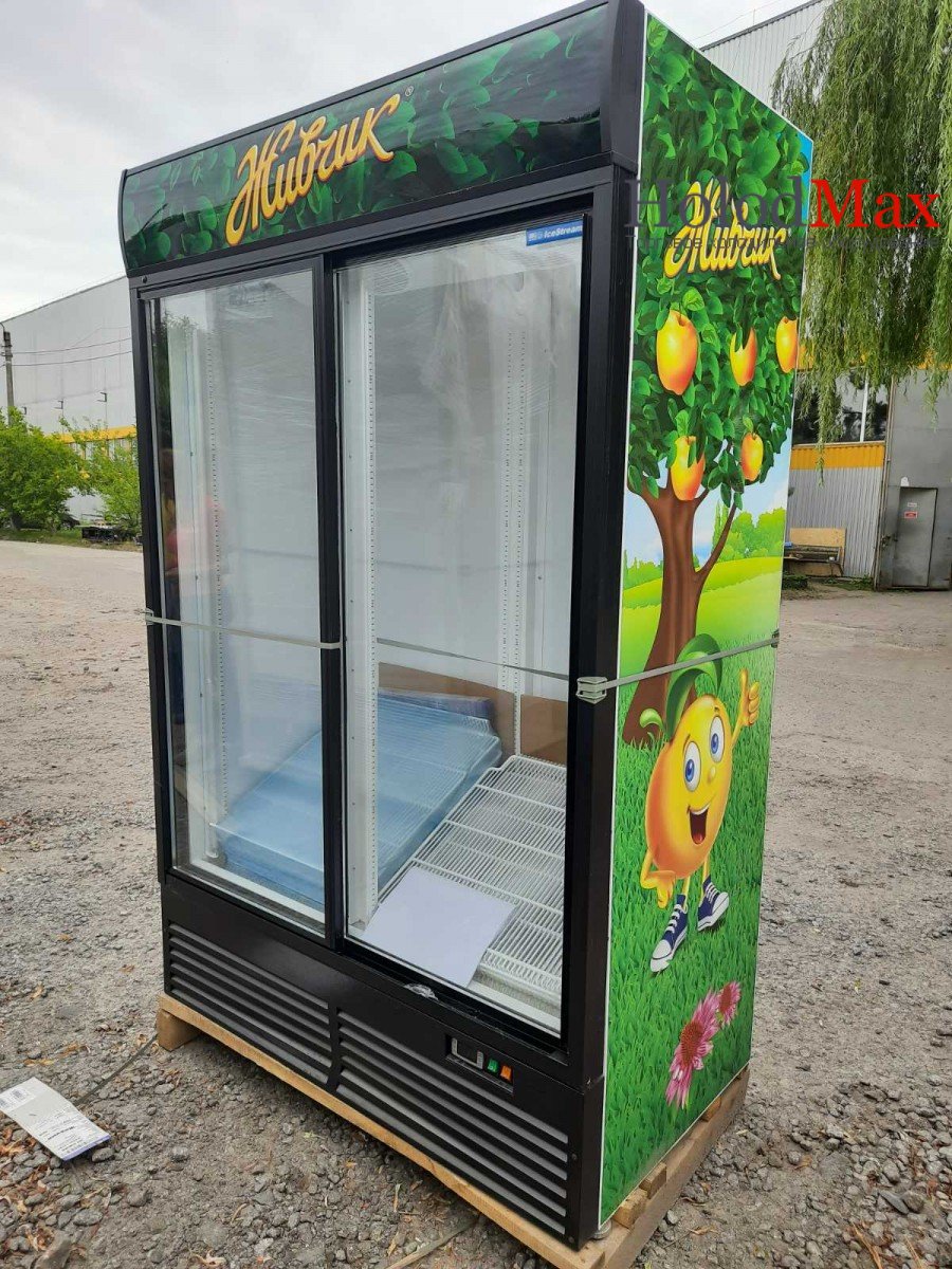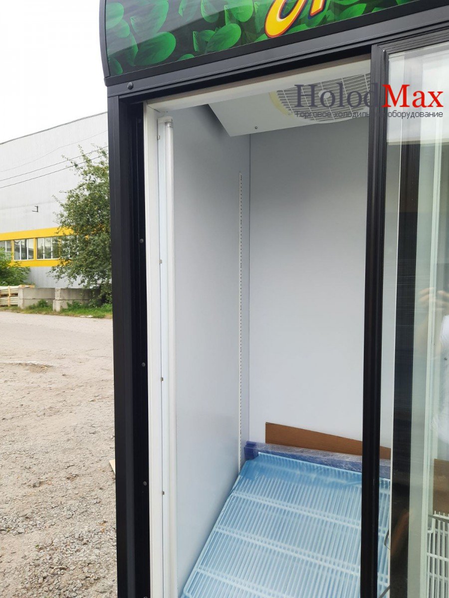 Демонстрационная графическая панель (лайт-бокс) с внутренней подсветкой экрана люминесцентной лампой. Испаритель — оребренный трубчатый теплообменник с принудительным обдувом. Направляемый воздуховодом принудительный поток воздуха обеспечивает равномерное распределение температуры и исключает запотевание стекла двери.