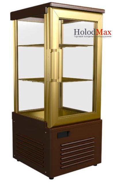Кондитерский охлаждаемый шкаф витрина Carboma R120C украсит магазин, кондитерскую, кафе или ресторан. Торты и пирожные сами по себе очень красивы, но помещенные в эту элегантную золотисто-шоколадную витрину, они будут еще лучше привлекать покупателей. Витрины холодильники R120C Carboma часто выбирают еще и потому, что занимая минимум места, они позволяют рассмотреть размещенные в них сладости со всех сторон. Система охлаждения – динамическая, идеальна для постоянного и равномерного распределения температуры по внутреннему объему, т.к. позволяет максимально быстро охлаждать поступающие кондитерские шедевры. Стенки стеклянные, дверца представляет собой помещенный в раму стеклопакет, поэтому у витрины хорошая теплоизоляция. Кондитерские изделия можно расставлять на основной демонстрационной поверхности и двух решетчатых полках, размером 380х405, высота которых еще и регулируется. Управление витриной осуществляется с помощью микропроцессорного блока с индикацией температуры. Внутренне освещение — LED подсветка.