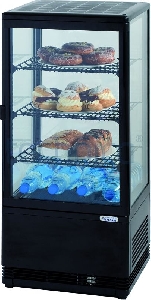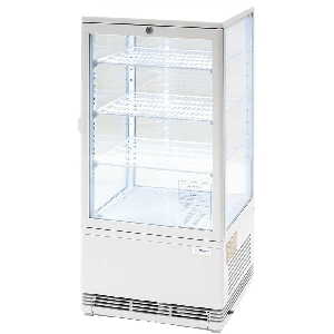 Шкаф барный Stalgast 78 белого цвета, с 3-мя полками, с подсветкой может использоваться для демонстрации кондитерских изделий, пиццы и др. Хладагент R134a.