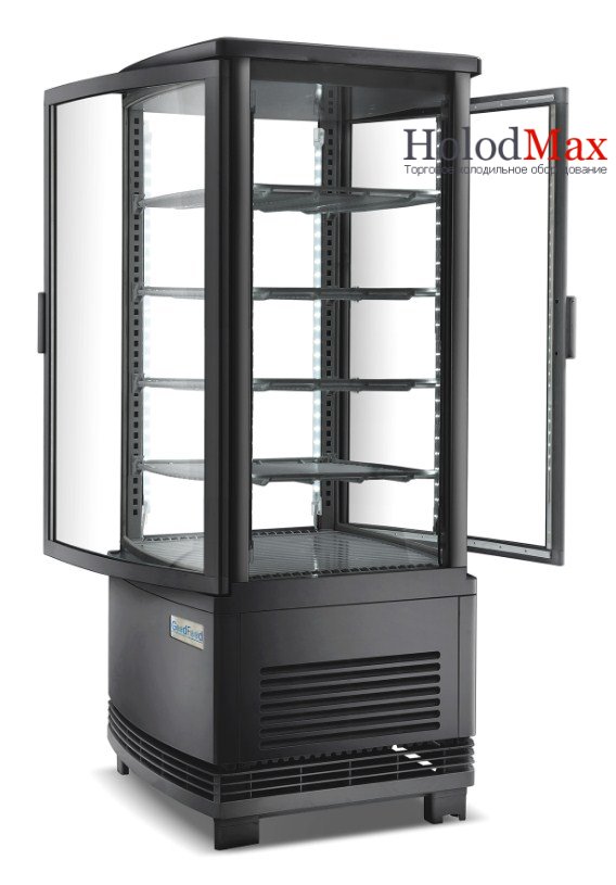 Вітрина холодильна GoodFood RT98LR2 чорна - призначена для демонстрації прохолодних напоїв чи кондитерських виробів. Корпус-пластик. Колір чорний.