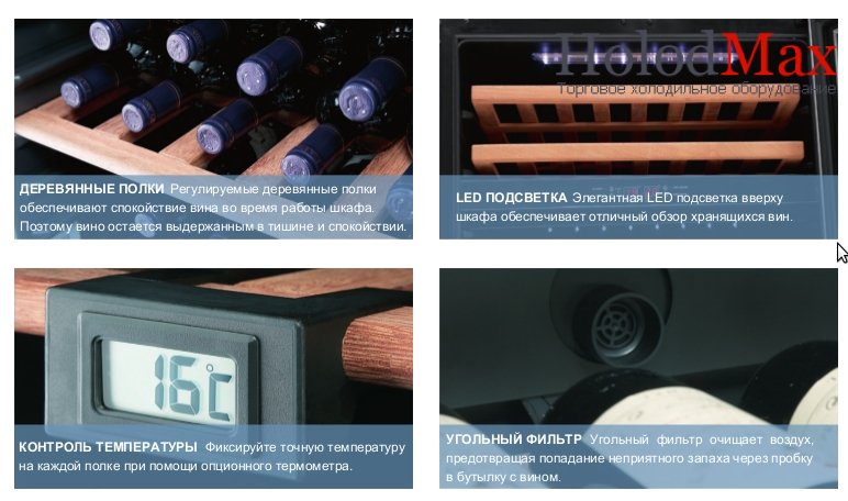 Как известно, вино требует точного соблюдения определенных правил хранения для его дозревания и протекания нужных биохимических реакций. Так, рекомендуемая температура для белого вина - 7-9 оС, для красного- 16-18 оС, а влажность порядка 70%. Не рекомендуются перепады температуры и лишние вибрации, прямое попадание ультрафиолета. Наиболее оптимальным решением является приобретение винного шкафа, в котором выдержаны вышеперечисленные условия. Такие модели соответствуют всем требованиям и заслуживают высокой профессиональной оценки. Выше представлен один из таких винных шкафов. VESTFROST VKG 571 изготавливается компанией Вестфорт, Дания с использованием передовых мировых технологий. Холодильный агрегат оснащен одним компрессором (DANFOSS (Германия)), имеет одну камеру.