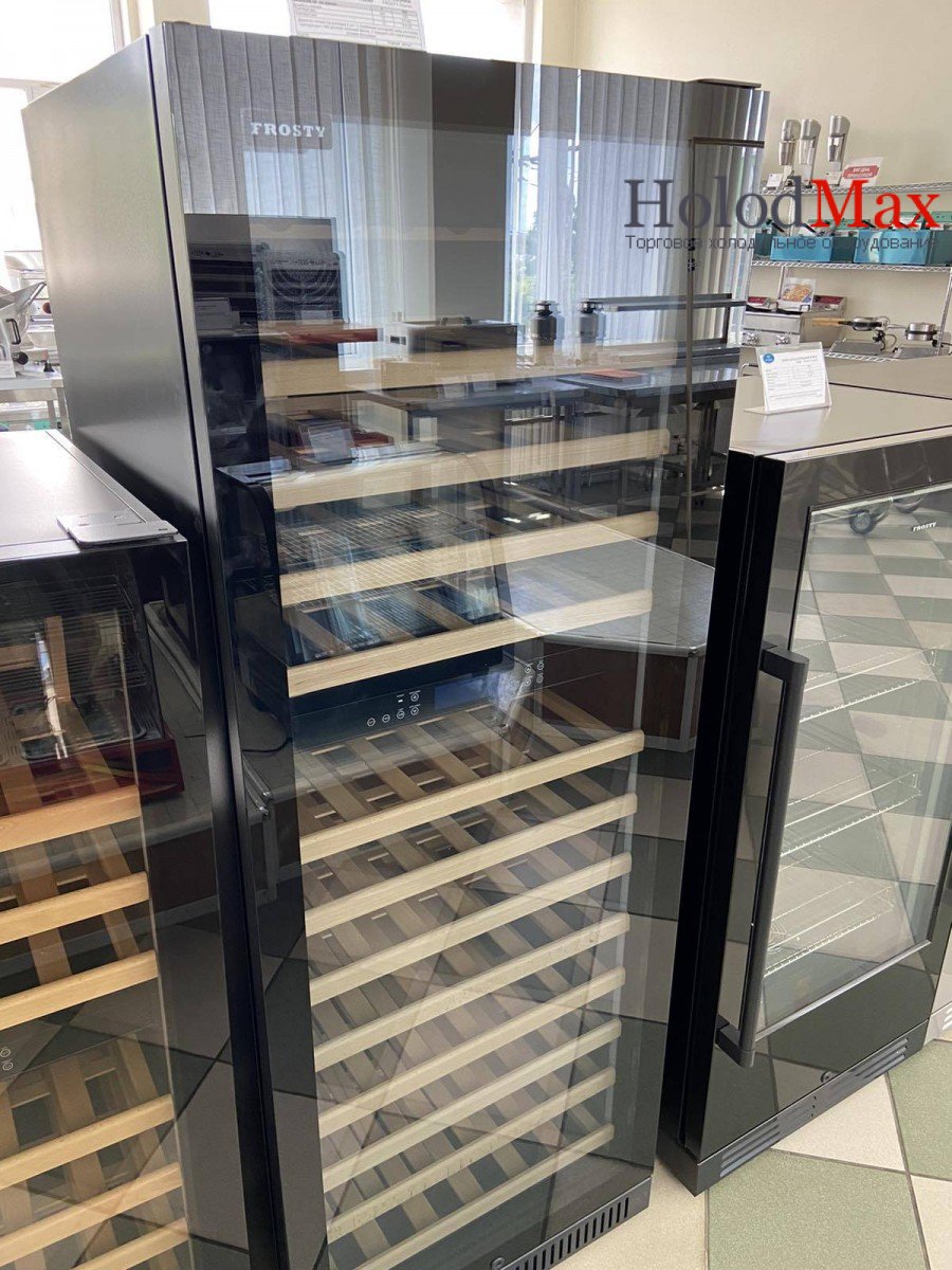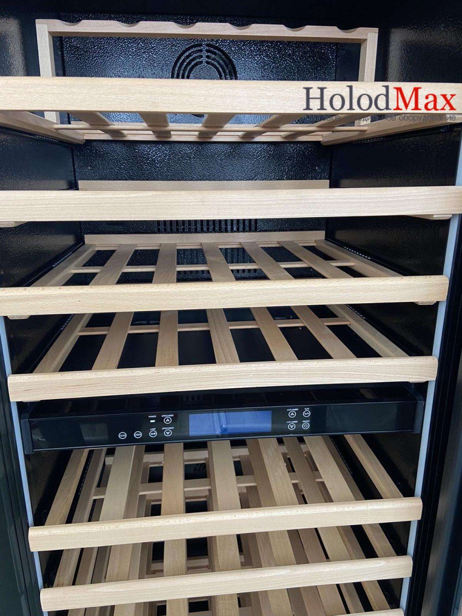 Винный шкаф Frosty H80D двухзонный - отличный выбор для хранения и презентации разных сортов вина. Бутылки в винных шкафах хранят в горизонтальном положении, чтобы пробка не рассыхалась. Выдвижные деревянные полки - бук на металлических телескопических направляющих: 6 полок 480х440 мм, 1 нижн. полка 480х300 мм, 1 демонстрационная полка 480х440х150мм.
