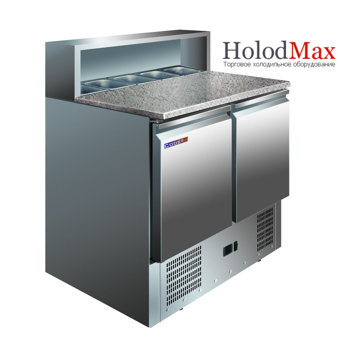 Столы изготовлены из нержавеющей стали AISI 304. Столешница из гранита. Принудительное охлаждение. Встроенный агрегат. Электронный цифровой термостат. Подогрев по контуру двери для устранения конденсата. Автоматическая оттайка хитером и с автоматическим контролем температуры размораживания. Автоматическое испарение конденсата. Испаритель защищен от коррозии. Самозакрывающаяся дверь с возвратным механизмом. Корпус со скругленными углами. Двери, легко взаимозаменяемые модулем с двумя или тремя ящиками. Изоляция 50мм. Максимальная окружающая температура +33°C. Ножки из нержавеющей стали, регулируемые по высоте. Вместимость 5хGN1/6 (без гастроемкост.)