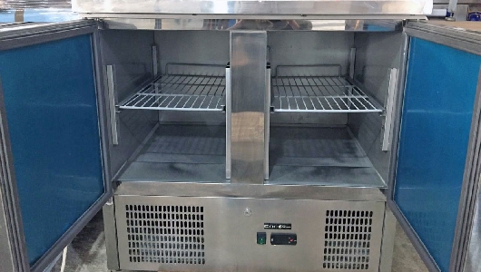 Стіл з холодильною шафою COOLEQ S901 виконаний з нержавіючої сталі. У стіл вбудовано холодильну шафу зі штучним охолодженням внутрішнього обєму. Стільниця з нержавіючої сталі виконує функцію робочої поверхні кухаря.