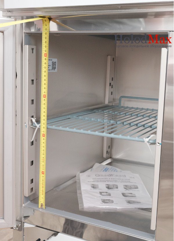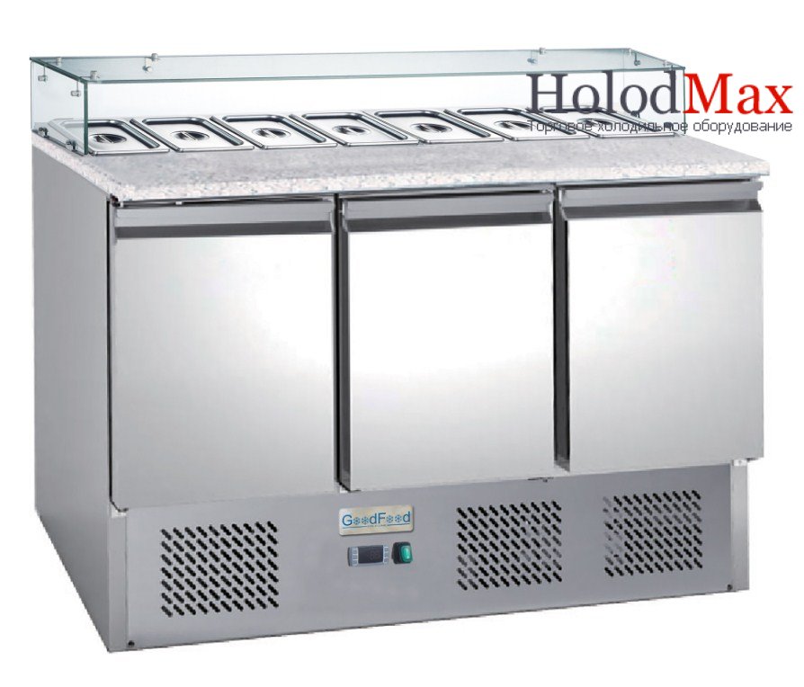 Саладета GoodFood GF-PS903GT-HC. Секції для гастроємностей призначені для короткочасного зберігання та демонстрації салатів, закусок, гарнірів тощо. Загальний холодильний обєм за дверима використовують для зберігання продуктів.