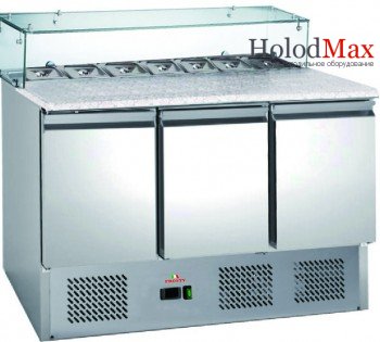 Холодильный стол для пиццы FROSTY PS903GT (гранитная столешница) - многофункционален. Внутри стола хранятся тестовые заготовки и проходят процесс ферментации, на гранитной столешнице готовят краст и укладывают начинку, а в охлаждаемой витрине хранится сама начинка.
