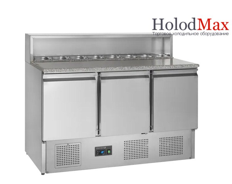 Холодильный стол для пиццы TEFCOLD-PT930 - призначений для приготування піци у барах, кафе, ресторанах. Корпус та внутрішнє оздоблення холодильного столу виконані з високоякісної нержавіючої сталі. Стільниця – граніт. Тип відкривання глухих ящиків – розпашні. Дана модель столу оснащена автоматичною системою відтайки, цифровою індикацією температури, що регулюються по висоті ніжками. Внутрішні розміри (ширина*глибина*висота) – 1295 x 515 x 500 мм. Вхідна потужність: 230 Вт. Рівень шуму – 42 Дб/А. Немає внутрішнього підсвічування та замків. Постачається без гастроємностей.