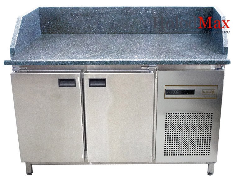 Холодильный стол Tehma 1192 с гранитной столешницей 2 двери, 3 борта выполнен из нержавеющей пищевой стали. Температура окружающей среды до +35С. Температурный режим +2...+8С. Объем камеры = 270л, max потребляемая мощность = 0,55 кВт. 3 борта - высота 20см, толщина 3см. Компрессор Lunite Hermetique (Франция), блок управления Dixell (Италия), динамическое охлаждение, автоматическое оттаивание.