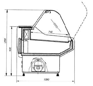 Площадь экспозиционной поверхности витрины составляет 1,37м2. Для подсветки продукции используется люминесцентная лампа. Ассортимент продукции, представленный на витрине доступен покупателю через обзорное стекло. В данной модели витрины установлено гнутое стекло, предотвращающие появление световых бликов. Боковые панели витрины защищены стойким к ударам ABS – пластиком, заполненным пенополиуретаном. Полка продавца выполнена из постформинга. Длина витрины составляет 2,03м., ширина – 1, 09м., поэтому её удобно устанавливать в супермаркетах или торговых залах. Гарантийный срок обслуживания составляет 12 месяцев.
