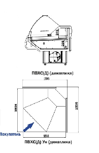 Витрина холодильная угловая Невада ПВХС(Д) (Технохолод (Украина)) - угол 90 градусов наружный. Интеллектуальная система управления температурным режимом и режимом оттайки. Фронтальное гнутое закаленное стекло. Охлаждаемый внутренний бокс (для ПВХС).