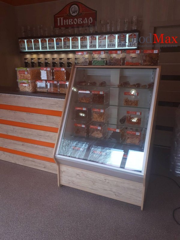 Витрина холодильная ДНIПРОторг с динамическим охлаждением (No Frost) - используется для демонстрации снековой продукции, а также гастрономической группы товаров (колбас,сыры, копчености) . Боковины выполнены из ламинированного ДСП.