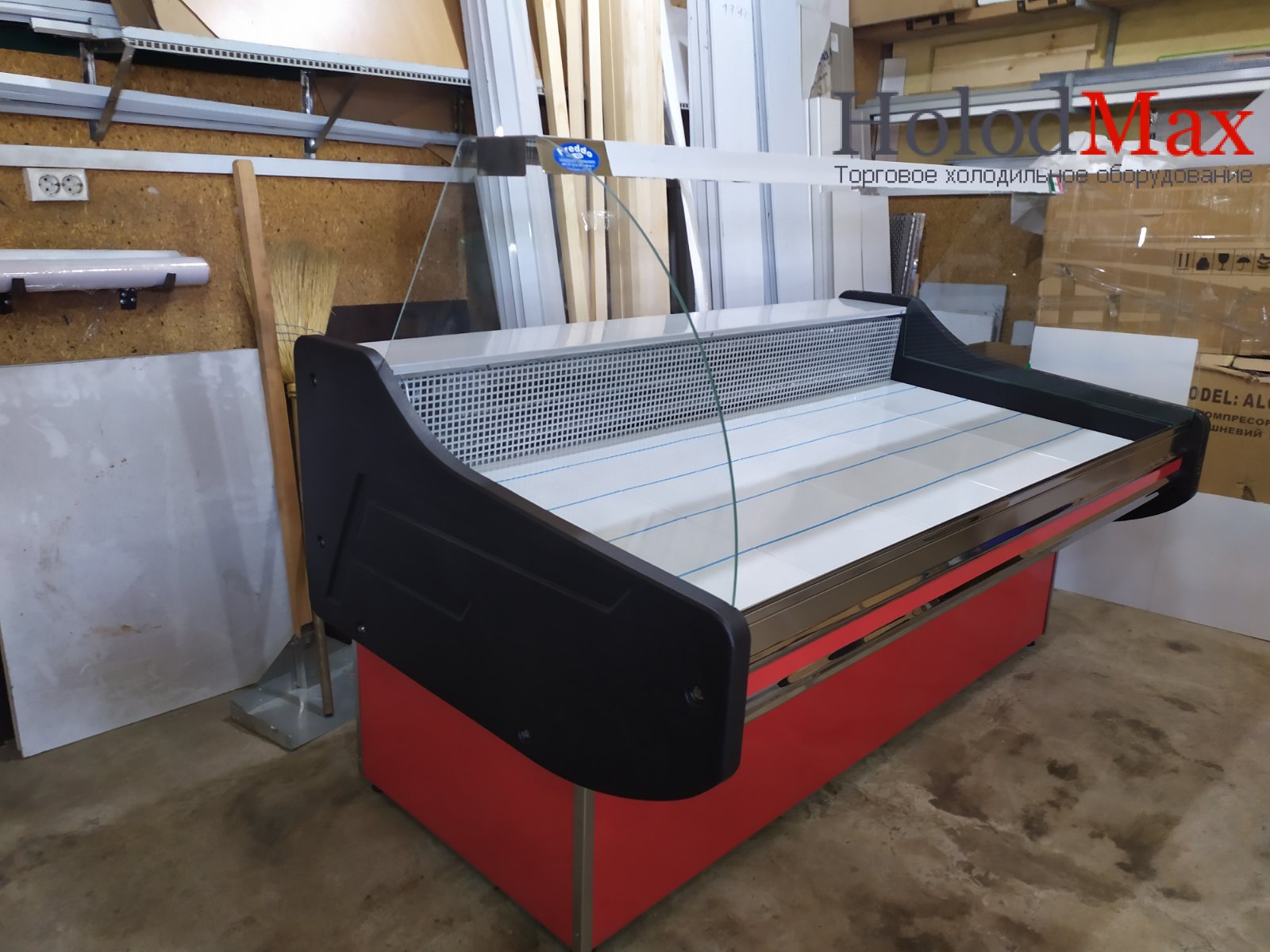 Викладка товару та полиця продавця виготовлена з харчової нержавіючої сталі. Підсвічування внутрішнього обсягу вітрини організоване за допомогою лампи, яка чудово підсвічує товари, що представляють покупцю. Якщо Ви реалізовуватимете мясну продукцію, ми рекомендуємо Вам докупити спеціальну «червону» лампу для більш ефектного підсвічування викладки.