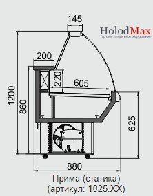 Холодильна вітрина Прима ПВХС - 1,3 харківського виробника Технохолод використовується в невеликих магазинах, кіосках, супермаркетах.