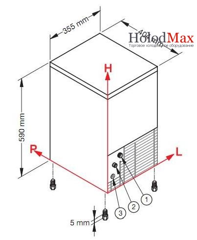 Льдогенераторы «кубикового типа» серии СВ работают по принципу распыления воды:на охлаждённые формы в виде усечённого конуса снизу вверх под давлением подаётся холодная вода. Нарастающий лёд заполняет объём охлаждённой формы, а затем обдаётся горячим паром хладагента, и готовые кубики льда падают в бункер-накопитель. Лёд, получающийся в льдогенераторе, компактный, прозрачный и плотный. Вес кубика 13 г. Главный недостаток - высокая чувствительность к чистоте воды и содержанию минеральных солей (рекомендуется использование умягчителей воды или фильтр, предотвращающий выпадение солей). Работают на экологически безопасном хладагенте R 404a. Уровень льда в них поддерживается автоматически; используется воздушное охлаждение. Для монтажа необходимы подводка холодной воды (вентиль 1/2´ или 3/4´´), а также отвод воды (сток ø 24 м).