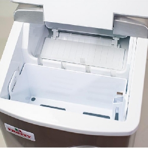 Особливості: Може виготовляти лід трьох різних розмірів. Льодогенератор має датчик наповненості резервуара для льоду та автоматично припиняє виробляти лід при заповненні резервуару. Не вимагає підключення до водопроводу. Апарат забезпечений системою «антишок», що запобігає удару електрострумом під час експлуатації.