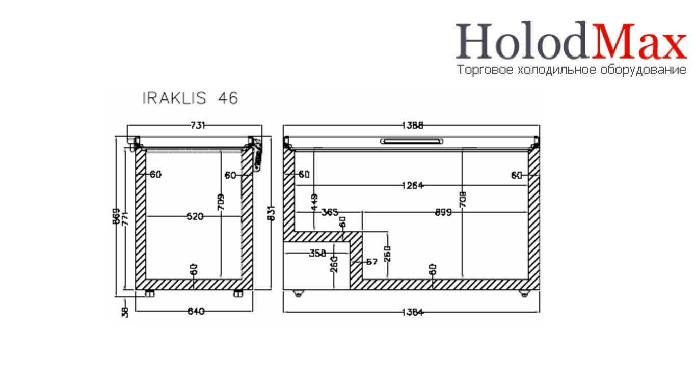 Морозильные лари Iraklis 46 це скриня обємом 417 л, з глухою відкидною кришкою, призначена для зберігання заморожених продуктів в магазинах, пекарнях, фаст фудах, та інших установах громадського харчування. Кришка з нержавіючої сталі дозволяє оптимізувати робочий простір на кухні і використовувати поверхню скрині замість столу. Поставляється без кошиків(корзин). Внутрішні розміри скрині: внутр. довжина - 1264 мм, внутрішня ширина - 520 мм. Наявність мідного конденсатора/радіатора, що обдувається, робить роботу обладнання незалежним від навколишнього середовища. Внутрішнє покриття із гладкої сталі з полімерним покриттям. Хладагент R290.