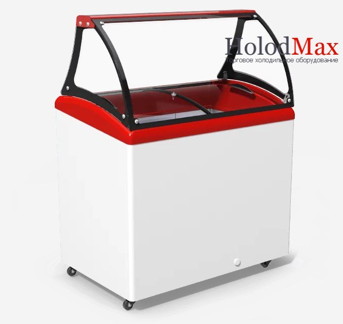 Надставка з гнутого гартованого скла. У верхній частині морозильної вітрини є підсвічування. Модель пристосована для вуличної торгівлі. Низький рівень споживання енергії, надійна робота при високих температурах навколишнього середовища (рекомендована зовнішня температура експлуатації +16 ... + 35). Усередині йдуть кошики які пристосовані для розміщення стандартних заводських пластикових контейнерів виробників м'якого морозива.