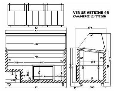 Морозильні ларі вітрини для м'якого морозива Венус Вітрина 46 це ларі, виду вітрини, розроблені спеціально для зберігання і продажу м'якого морозива як в магазинах, так і на виносних торгівельних точках. Венус Вітрина 46 дозволяє завантажити до 83 кг (454 л об'єму) продукції. Спеціальний температурний режим максимально сприяє тривалому зберіганню продукції.