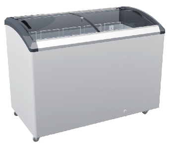 Морозильний ларь Juka M400S з гнутим склом ідеально підійде для продажу і зберігання заморожених, охолоджених продуктів. Корисний об'єм 340 л. У комплекті 5 кошиків, замок і колеса для зручного транспортування.