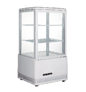 Об`єм барного холодильника 58 літрів. Корпус виконаний з пластика, з усіх 4-х сторін шафи встановлено скло. Шафа оснащена 2-ма полками, цифровим термостатом, має зовнішній обдув, вентильований об'єм, автовідтайкою, підсвічуванням і замком. Термостат дозволяє встановлювати температуру від 0 до +12°С.
