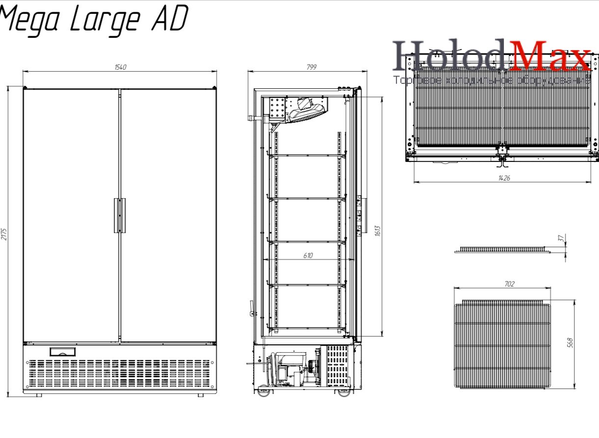Холодильна дводверна шафа Mega Large AD на інверторному двигуні зі споживанням 3,9 кВт/добу.