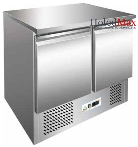 Стол холодильний Forcar G-S901 - 2 двери, без витрины, рабочая поверхность из нерж. стали, объем 240 л, 1 решетчатая полка GN 1/1 с пластиковым покрытием в каждом отделении, температура +2...+8°С (при tнар до +33°С), внутренняя и внешняя отделка - нерж. сталь, хладагент R600А, толщина термоизоляции 40 мм, статическое охлаждение, электронная панель управления, автоматическое размораживание и испарение талой воды, автоматическое испарение талой воды.